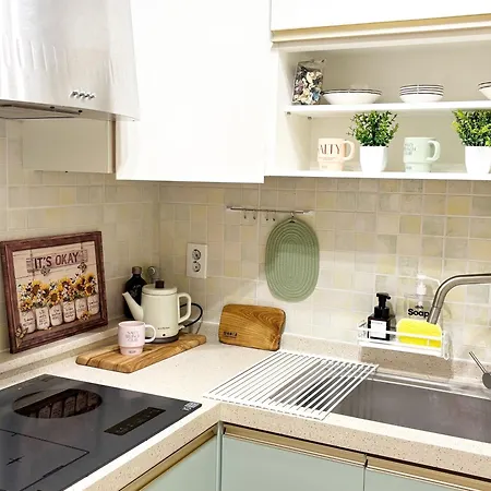 The Urban Oasis Hongdae Apartment offers convenient self-catering facilities, including an equipped kitchen with an electric kettle, a fridge, and kitchenware. Gimpo airport is at a 15-minute driving distance, and Mangwonjeong Entrance bus stop is in proximity to The Urban Oasis Hongdae Apartment.